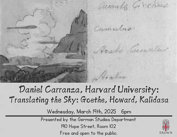 March 19, 2025: “Translating the Sky: Goethe, Howard, Kalidasa.” Brown University German Department. Providence, RI. Invited talk.
